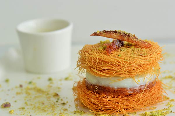 2. ويتم وضع القشطلية فوق معجون التمر.