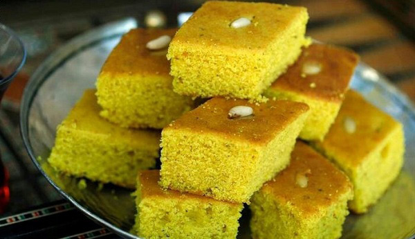 5.  يخبز الخليط في فرن ساخن وتترك مدة 30 دقيقة ثم تترك الصفوف حتى تبرد ثم تقطع وتقدم.
