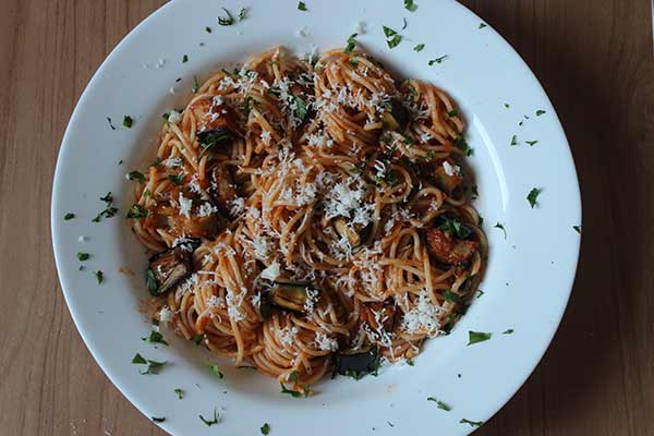 طريقة تحضير مقادير السباغيتي بالباذنجان وجبن الحلوم.. مبتكر ولذيذ