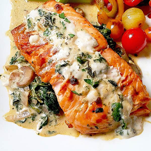 المذاق البحري في سمك السالمون والممزوج مع نكهة السبانخ والمشروم.. مذاق ساحر باستطاعتك ضمه إلى سفرتك الخاصة في البيت