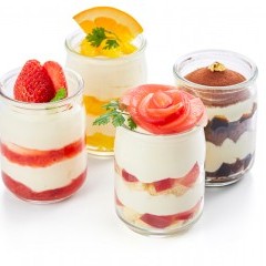 - إبدأي بتوزيع نصف كمية مزيج الكيك في كاسات التقديم واستخدمي كيس الحلويات ووزعي نصف كمية الكريمة فوق طبقة الكيك وزيدي طبقة من التوت الأحمر فوق طبقة الكريمة.