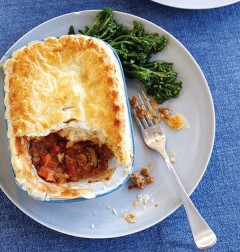- وزعي اللحم في طبق الفرن ثم وزعي الجزر المهروس والبطاطس والجبن الشيدر.