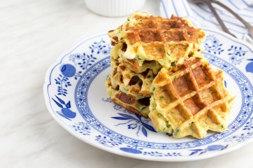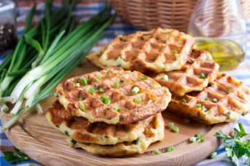 - في ماكينة الوافل نضيف ملعقة كبيرة وافل ونضيف عليها الجبن ونغلقها حتى تنضج.