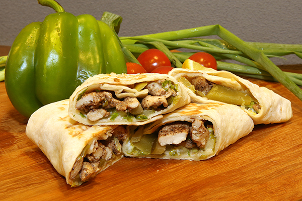 4. ندهن خبز البيتا بمقدار كافي من صلصة الثوم ثم نوزع الدجاج المحضر سابقاً ثم نضع الخس والمخلل ونلف الخبز على شكل أسطواني ونحمرها على الشواية وتقدم ساخنة.