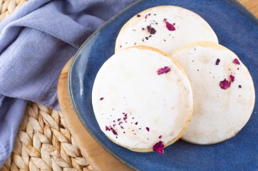 8. اغمسي الحلى المثلج في صوص الفانيلا وزينيه بالفستق والورد وقدميه بارداً.