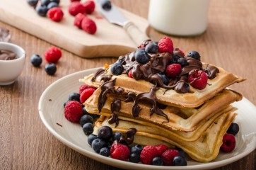 - زيني الوافل بالسكر والفواكة وقدميه فوراً.