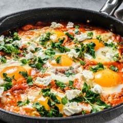 - أضيفي البيض والملح وقلبي حتى ينضج البيض.