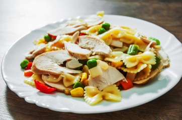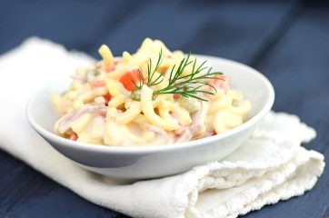 - اسلقي المكرونة واغسليها بماء بارد وصفيها وضعيها في طبق.