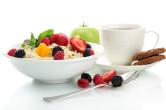 - قطعي التفاح، والمشمش، والموز، والفراولة لقطع صغيرة.