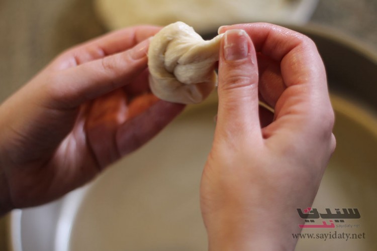 اربطي أطراف العجينة مع بعضها البعض كما في الصورة
