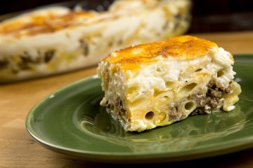4. ضعي المكرونة في صينية الفرن، وصبي صوص البشاميل وحركي المكونات جيداً، ثم ضعي جبن البارميزان، وباقي كمية جبن الموزاريلا على وجه الصينية، وأدخليها إلى الفرن حتى تذوب الجبنة ويتحمر الوجه ثم أخرجيها وقدميها ساخنة.
