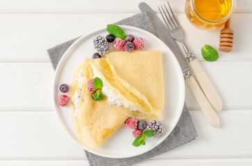 - أحضري مقلاة، وضعي مغرفة من الخليط مع القليل من الزيت، واقلي الكريب على الوجهين حتى ينضج.