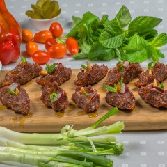 - افرمي البصل ناعم ثم اعجنيه بيديكِ مع اللحم، وأضيفي البهارات والتوابل إلى اللحم والبرغل وافرميه مرة أخرى بالمطحنة.