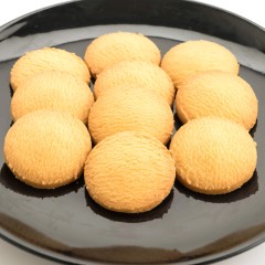 - شكلي العجين لكرات متوسطة الحجم، واضغطي عليها بكف اليد وضعيها في الصينية المجهزة.