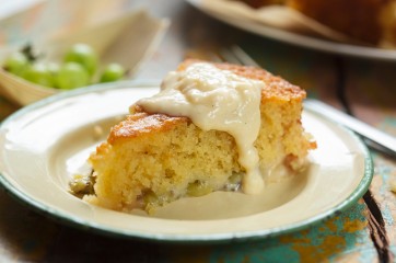 - قطعي كيك الزعفران إلى مربعات متساوية أو مثلثات، ووزعي حول كل مربع كمية من الصوص وقدميه.