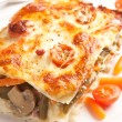 - أدخلي الطبق للفرن لحوالي 30 دقيقة لينضج ويتحمر السطح ثم يقدم.