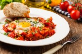 1. لإعداد البيض، نغلي الماء مع الخل على النار، وفي صحن جانبي نكسر البيض، كل بيضة على حدة، ونحرك الماء جيداً، ثم نضيف البيض إلى الماء، ويترك حتى استواء البيض للدرجة المطلوبة.