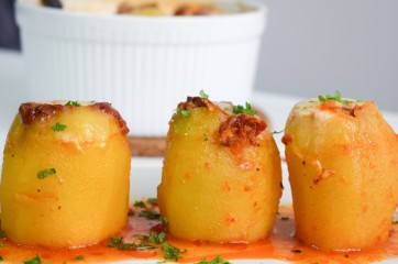 - صُفي حبات الفلفل المحشوة بالقدر.