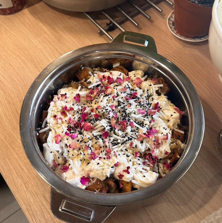 - أضيفي العسل وجبن الموزاريلا نادك، وزيني بحبة البركة والورد المديني المجفف حسب الرغبة.