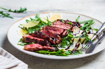 - قلبي الستيك بملعقتين من زيت الزيتون في مقلاة على نار عالية على الجهتين حتى يتحمر وينضج.