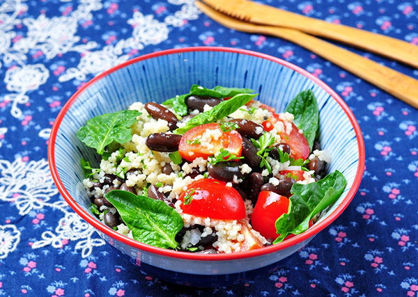 طريقة تحضير مقادير سلطة الفاصوليا السوداء والكسكس