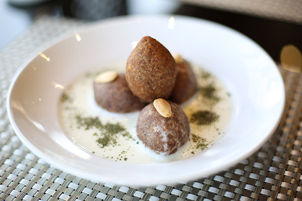 4. عند التقديم نقوم بوضع حبات الكبة بصحن التقديم ويسكب فوقها اللبن ويتم رش القليل من النعنع الناشف.