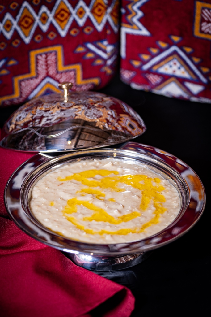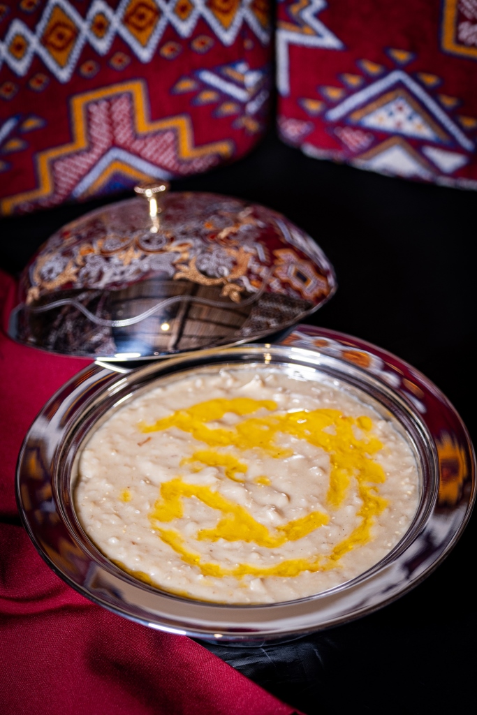 - يغرف الهريس في أواني التقديم، ويصب على الوجه بعض من السمن ونقدمه.