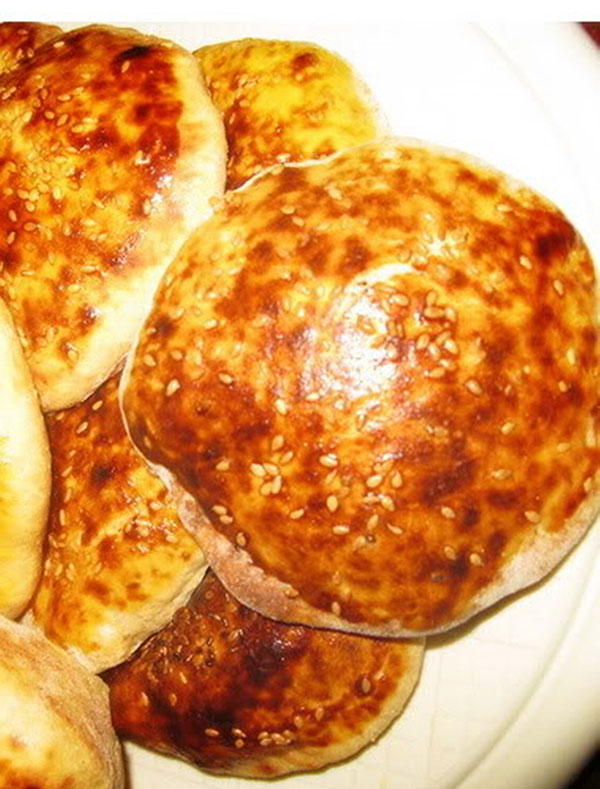 5. أنثري القليل من السمسم على وجه كرة العجين ثم رصيها داخل صينية مدهونة بالقليل من الزيت.