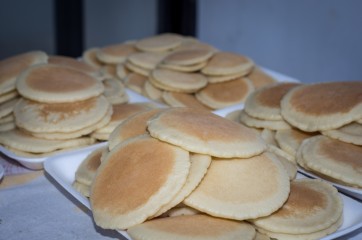 3. يصب مقدار ملعقة كبيرة من المزيج وتكرر الطريقة نفسها على أن تحمر القطايف من جهة واحدة فقط.