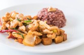 - بمجرد أن تغلي الصلصة قليلاً، أضيفي الدجاج المقلي وقلبي المكونات حتى يتشرب الدجاج الصلصة جيداً، واتركيه ينضج لمدة دقيقة أو دقيقتين.