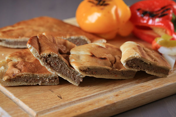 3. افتحي كل رغيف، وضعيه على ورقة ألومينيوم مطلية بمقدار ملعقة من الزيت، من ثم احشي الرغيف بمقدار مناسب من خليط اللحم والخضروات، ووزعي الأخير في داخله جيداً. ثم اقفلي ورق الألومينيوم، جيداً.