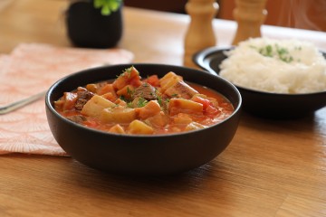- اسكبي إيدام الزهرة والبطاطس في طبق التقديم وقدميه ساخناً إلى جانب الأرز.