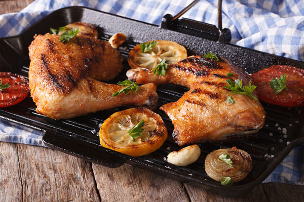 2. حضري شواية الفحم أو الفرن حسب الرغبة، بتسخينها لحرارة متوسطة ثم ضعي قطع الدجاج لتشوى على الجهتين وتنضج تقريبا لمدة 25 دقيقة على نار منخفضة.