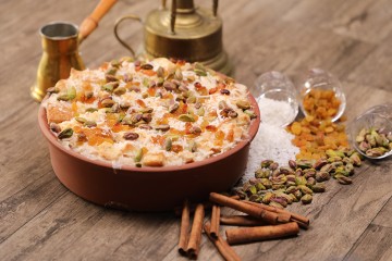 - رشّي الفستق الحلبي المجروش على الوجه، ثم أدخلي الطاجن إلى الفرن لحوالي 25 دقيقة حتى يصبح الوجه ذهبياً، وقدمي حلى أم علي بالبف باستري ساخناً.