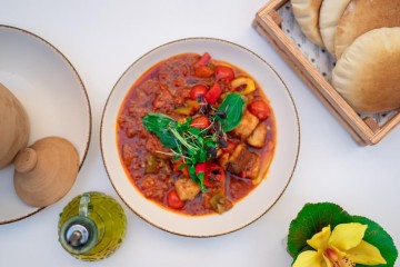 - غطّي الصينية بورق الألمنيوم، ثم أدخليها إلى الفرن لحوالي 60 دقيقة حتى تمام النضج، ثم قدميها.