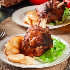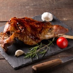 - أخرجي الفخذ من الفرن، واتركيه في الصينية لمدة ١٠ دقائق ليتماسك اللحم.
