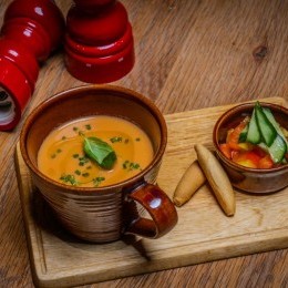 حساء جاثباتشو الأندلس ... شوربة الطماطم الباردة والخيار والفلفل (بالإسبانية: Gazpacho)، وهو حساء خضروات أساسه الطماطم ويقدم بارداً، نشأ في جنوب إقليم الأندلس، ينتشر في المطابخ الإسبانية والبرتغالية انتشاراً واسعاً، وتنتشر في أشهر الصيف بسبب برودتها وطبيعتها المنعشة