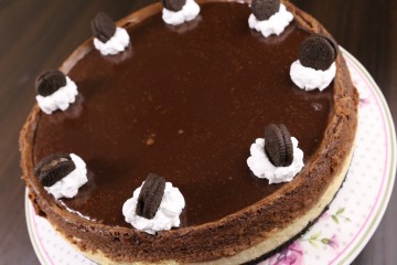 - أخرجي الصينية من الفرن، واتركي التشيز كيك حتى يبرد، وزيني بصوص الشوكولاتة أو الكراميل وقدميه بارداً.