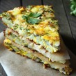 - ضعي خليط البيض، وخففي حرارة النار، وغطي المقلاة لمدة دقيقة، ثم اقلبي الأومليت على الجهة الأخرى حتى تمام النضج.