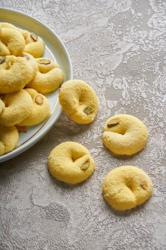 - اخلطي جميع المقادير معاً في وعاء، ثم شكلي الغريبة بحسب الرغبة وزينيها بالمكسرات.