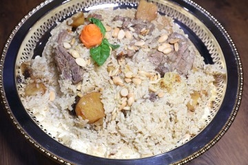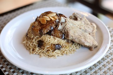 - إقلبي مقلوبة الباذنجان النباتية في طبق تقديم واسع، ثم زيّنيها بالمكسرات، وقدميها ساخنة.
