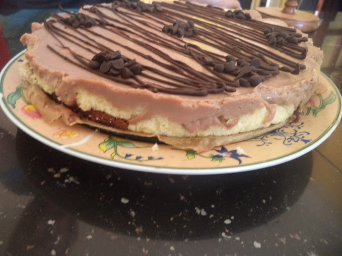 4. ثم تضاف الشانتيي على دفعتين إلى الخليط السابق ثم يفرغ الخليط فوق طبقة الكيك التي حضرنا من قبل ويترك القالب يبرد لدقائق في حرارة المطبخ ثم يدخل الثلاجة مدة 6 ساعات ثم يزين حسب الرغبة و يقدم.