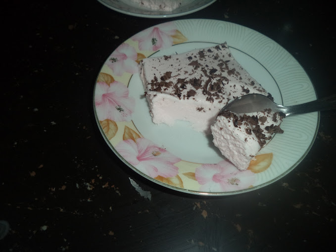 3. ندهن القالب بالقليل من الزيت ونفرغ الخليط وعلى الثلاجة مباشرة أي المجمد.