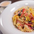 - في وعاء زجاجي عميق، اخلطي المكرونة المسلوقة مع مكونات السلطة المفضلة، وتبليها بصوص المايونيز، وقدمي وصفتك باردة.