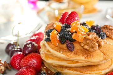- زيني البان كيك بالعسل أو السيرب المفضل لكِ بحسب الرغبة.