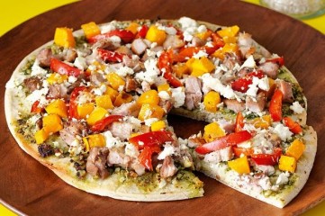 - أخرجي البيتزا من الفرن وقطعيها لمثلثات وقدميها ساخنة.