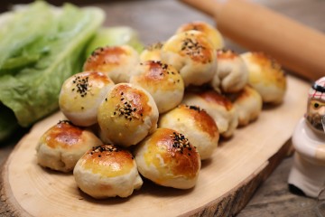 - ادهني وجه الفطائر بصفار البيض المخفوق قبل خبزها للحصول على لون ذهبي لامع، وزيني الوجه بحبة البركة.