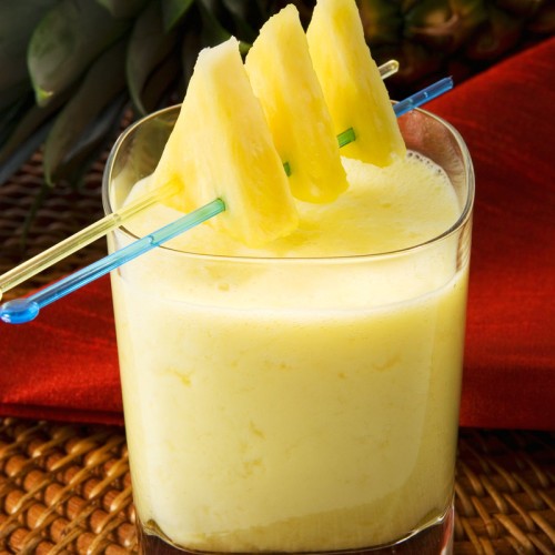 3 ـ يقدّم على الفور في كوب مزيّن بقطع الأناناس الصغيرة.