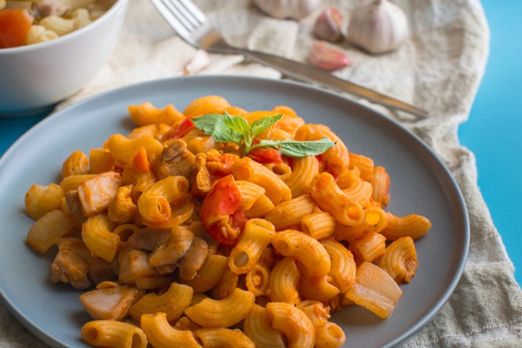 مقادير مكرونة الدجاج بصلصة البندورة للرجيم
