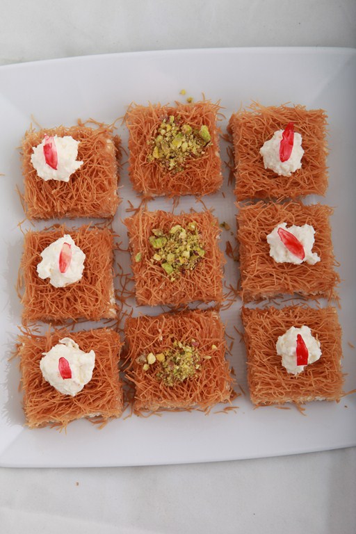 4 تقدّم العثمليّة باردة مع القطر، بعد تزيينها بدوائر من القشدة وزهر الليمون والفستق.